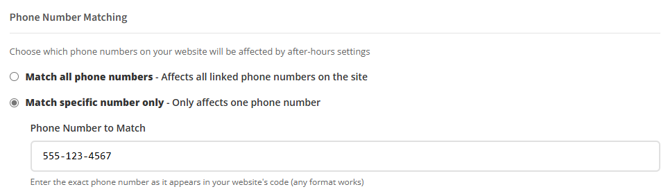 Choose whether to display the widget for all phone numbers on your site, or target a specific number. Perfect for businesses with multiple departments or locations.