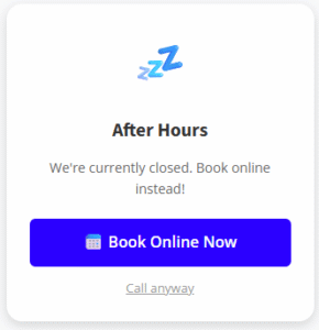 AI After Hours automatically detects when your business is closed and guides visitors to book online instead of calling. Smart, simple, and effective.