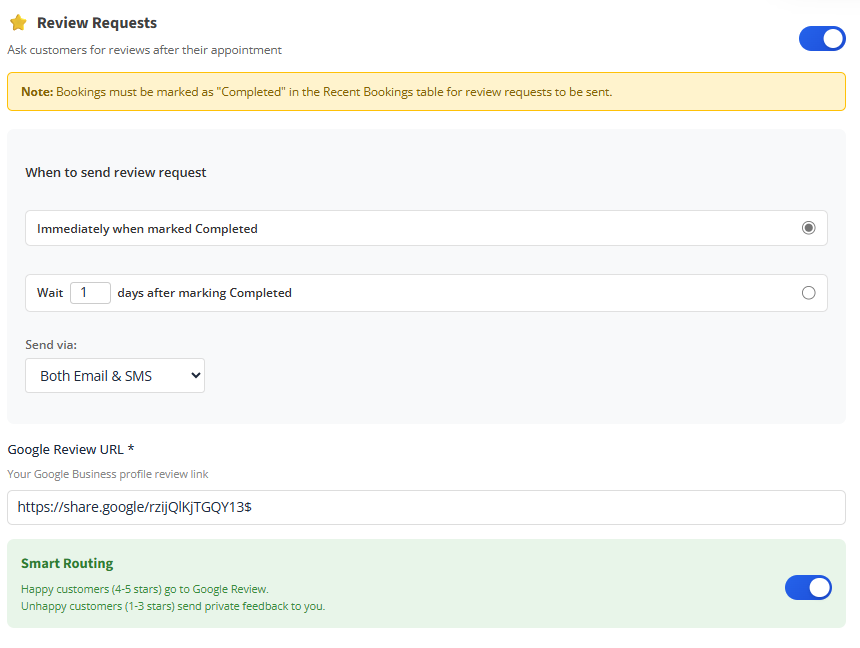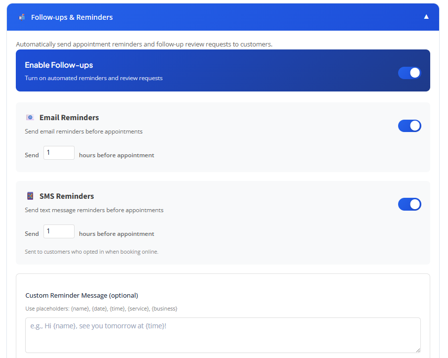 One-click Google Calendar integration. Existing events automatically block time slots. New bookings create calendar events instantly.